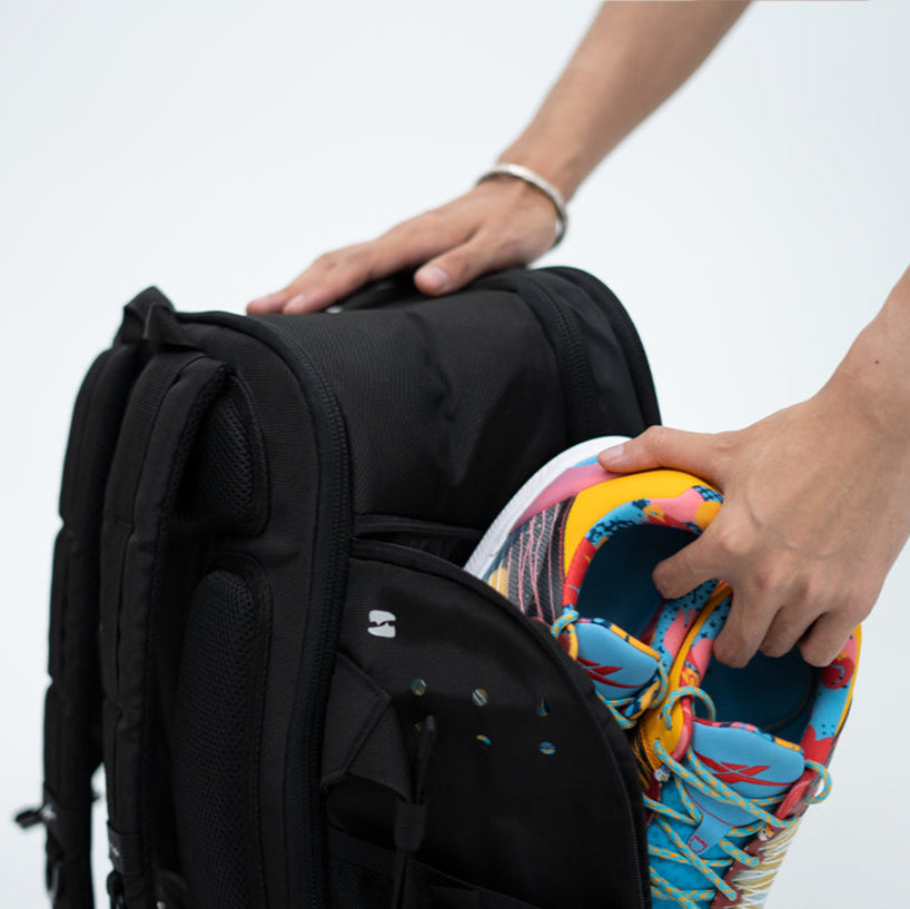 - Ventilated side compartment for another pair of shoes